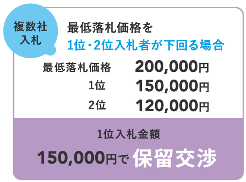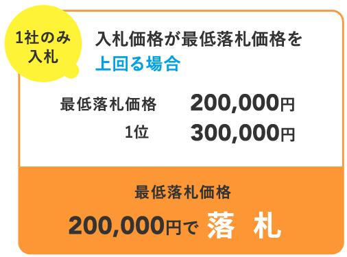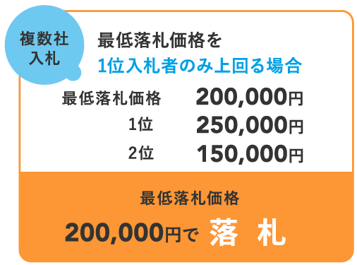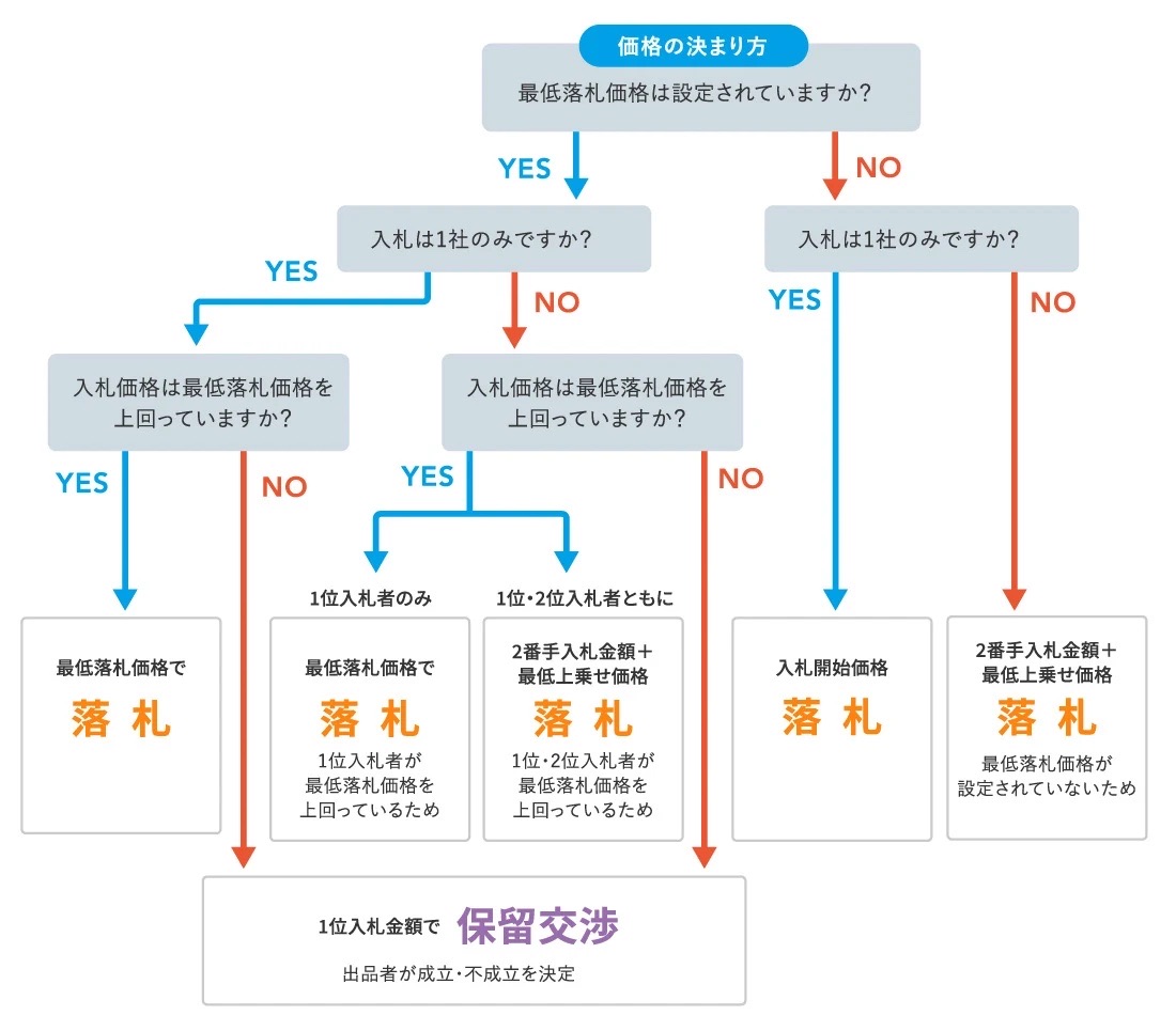 『最低落札価格』が設定されているか、複数入札があるかによって最終結果は異なります。詳しくは下記のフローチャートでご確認ください。