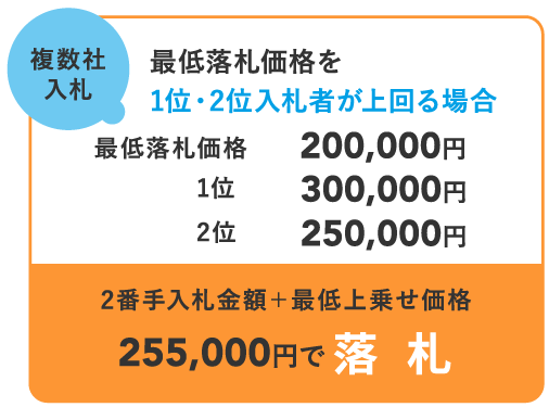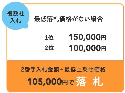 2番手の金額に上乗せ金額をプラスした金額が最終落札金額となります。